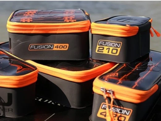 Deze uitgebreide range van opbergtassen en bait bowls mag bij geen enkele visser meer ontbreken! De tassen zijn allemaal gemaakt van hoogwaardig EVA materiaal dat 100% waterdicht is. Daarnaast zijn de Fusion 110, 150, 210, 400, 420, 800 en Catapult Bag voorzien van een handige getinte deksel welke eenvoudig dicht geritst kan worden om zo kostbaarheden of aas tegen weer en wind te beschermen.